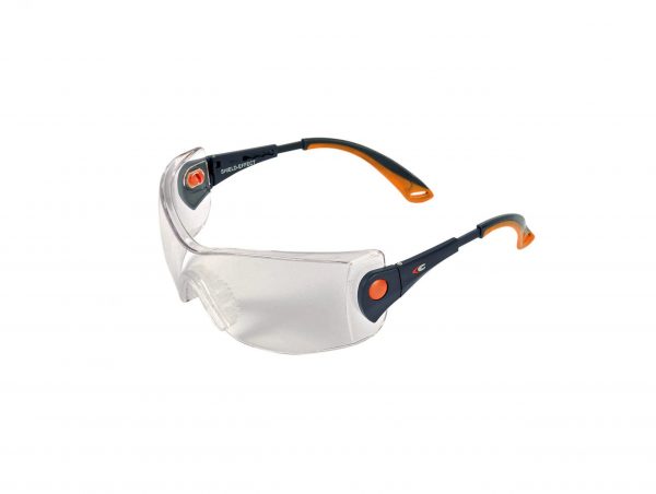 Gafas que garantizan una protección completa en las partes laterales, superior e inferior. Cristales con un sistema de ajuste de las varillas tanto en longitud como en grado de perfecta adaptación al rostro. Piezas ajustables para la nariz en material suave y con un óptimo confort.